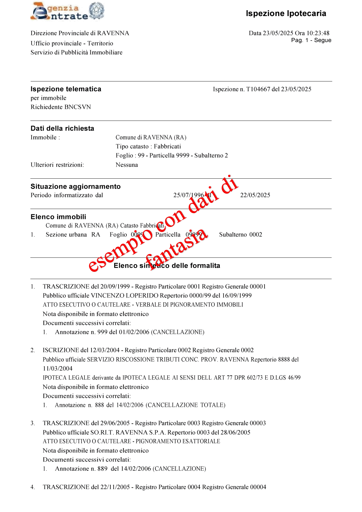 ESEMPIO "VISURA PREGIUDIZIEVOLI"